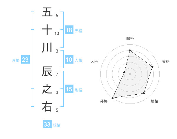 五十川 辰之右さんを姓名の画数から五運を鑑定