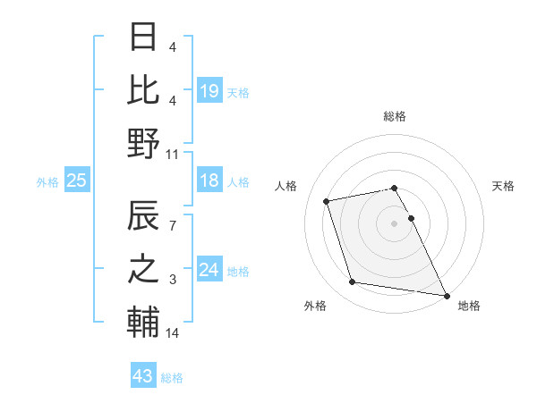 日比野 辰之輔さんを姓名の画数から五運を鑑定