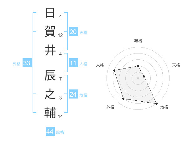 日賀井 辰之輔さんを姓名の画数から五運を鑑定
