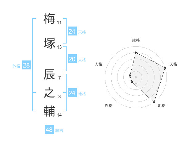 梅塚 辰之輔さんの天格は24画の5点!