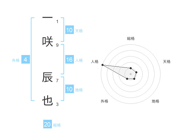 一咲 辰也さんの総格は20画の1点!