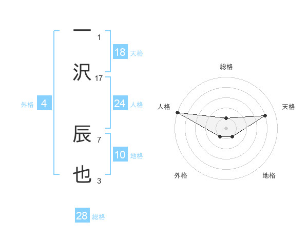 一沢 辰也さんの総格は28画の1点!