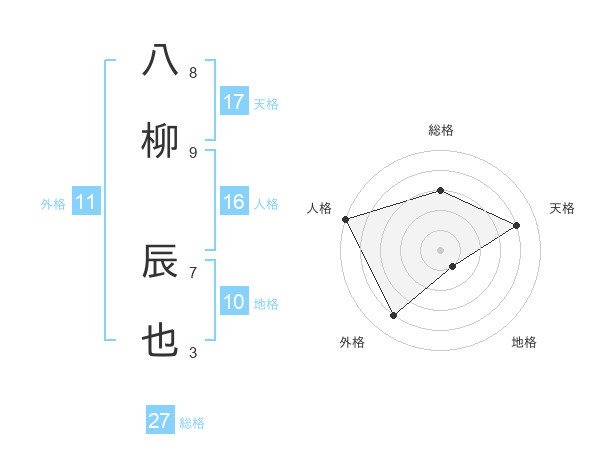 八柳 辰也さんの総格は27画の3点!