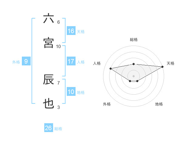 六宮 辰也さんの総格は26画の2点!