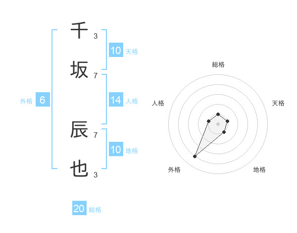 千坂 辰也さんを姓名の画数から五運を鑑定