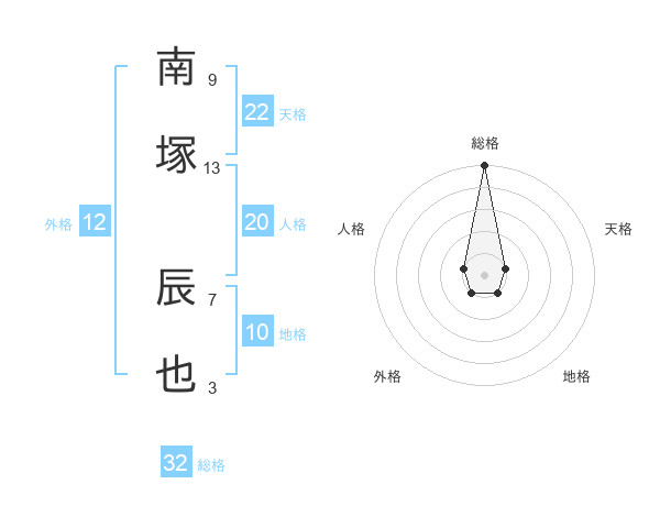 南塚 辰也さんを姓名の画数から五運を鑑定
