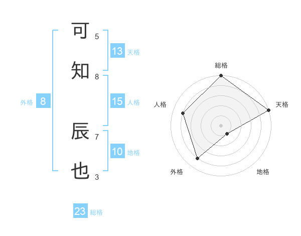可知 辰也さんの天格は13画の5点!