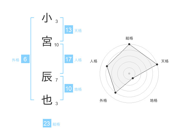 小宮 辰也さんを姓名の画数から五運を鑑定