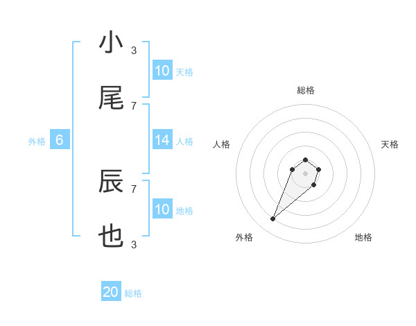 小尾 辰也さんを姓名の画数から五運を鑑定