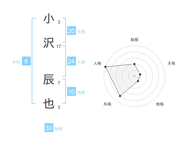小沢 辰也さんの総格は30画の2点!