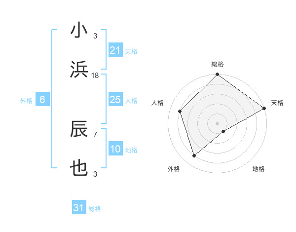 小浜 辰也さんの総格は31画の5点!