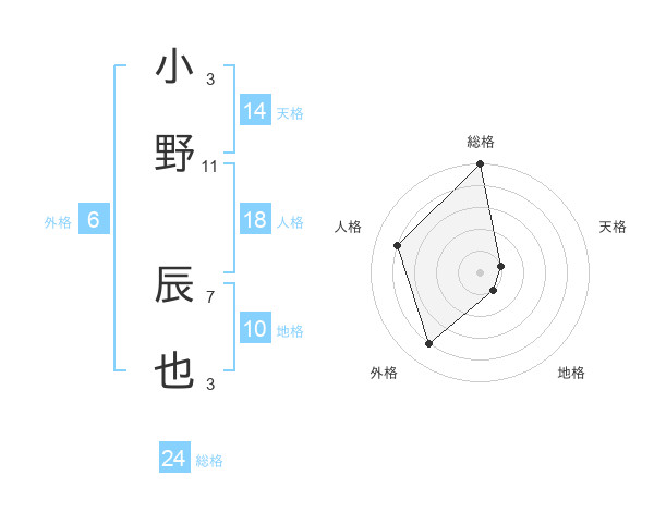 小野 辰也さんの総格は24画の5点!