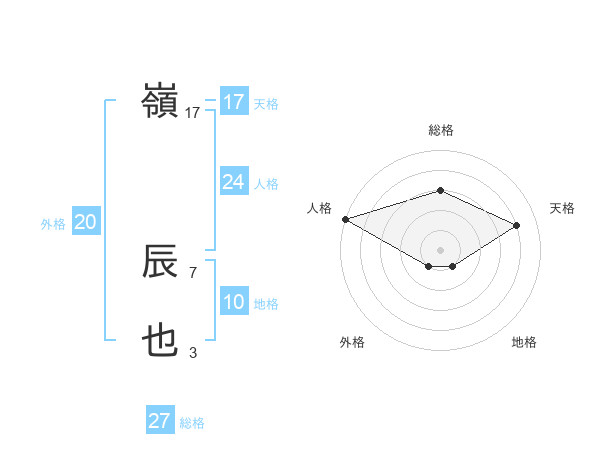 嶺 辰也さんの総格は27画の3点!