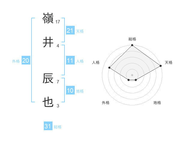 嶺井 辰也さんの天格は21画の5点!