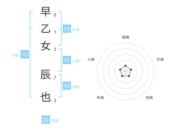 早乙女 辰也さんの総格は20画の1点!