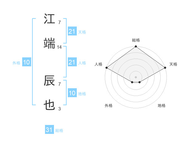 江端 辰也さんの天格は21画の5点!