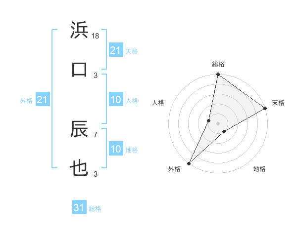 浜口 辰也さんの総格は31画の5点!