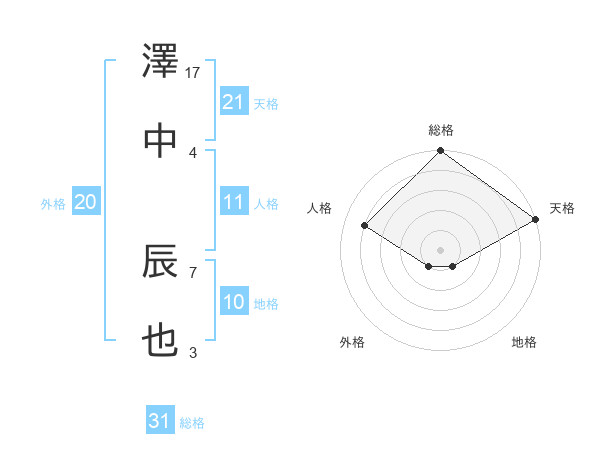 澤中 辰也さんの天格は21画の5点!
