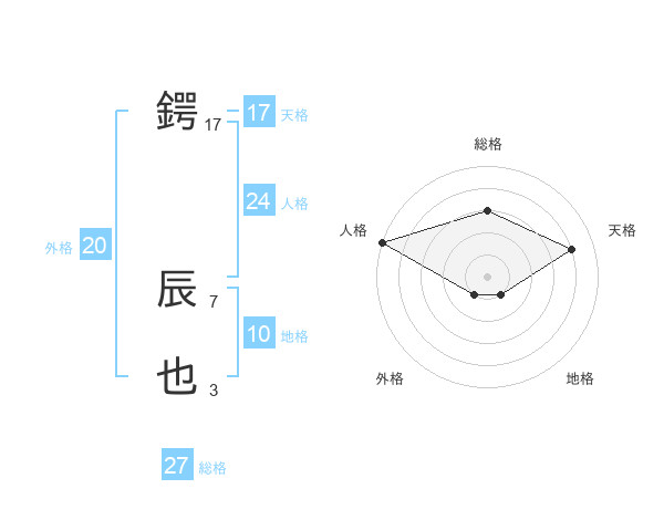 鍔 辰也さんを姓名の画数から五運を鑑定