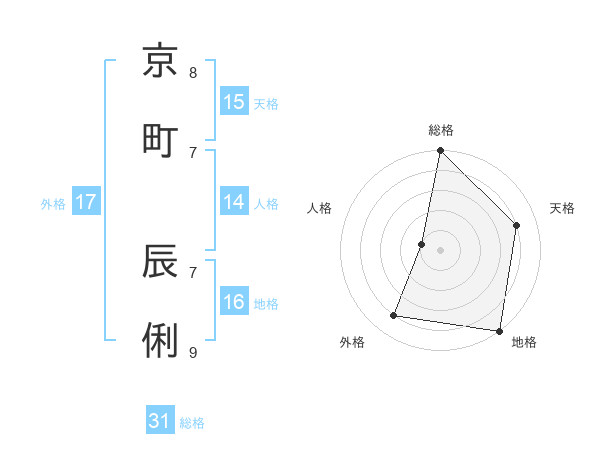 京町 辰俐さんの総格は31画の5点!