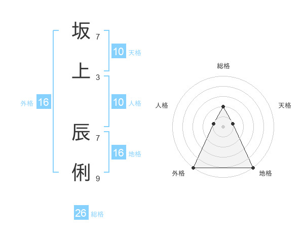 坂上 辰俐さんの外格は16画の5点!