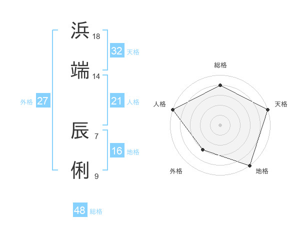 浜端 辰俐さんの総格は48画の4点!