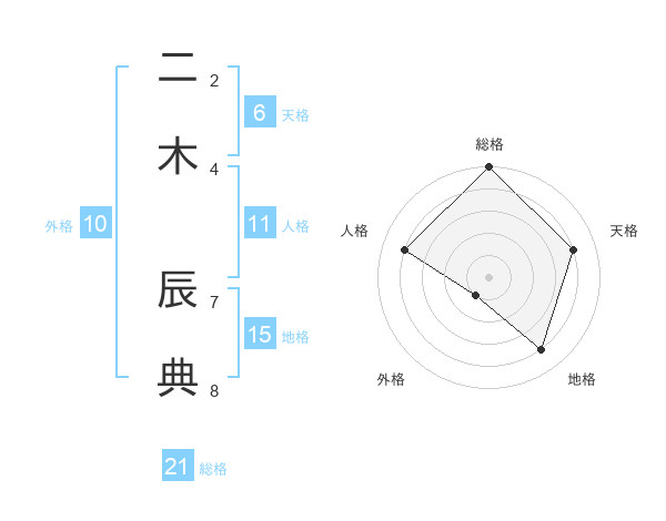 二木 辰典さんの総格は21画の5点!