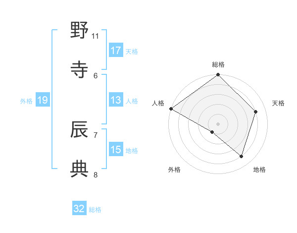 野寺 辰典さんを姓名の画数から五運を鑑定
