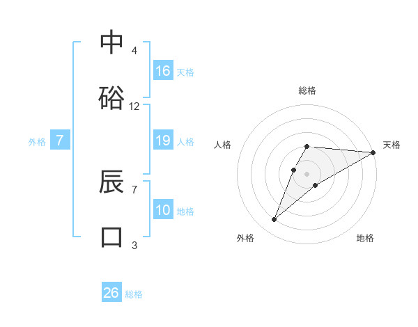 中硲 辰口さんの総格は26画の2点!