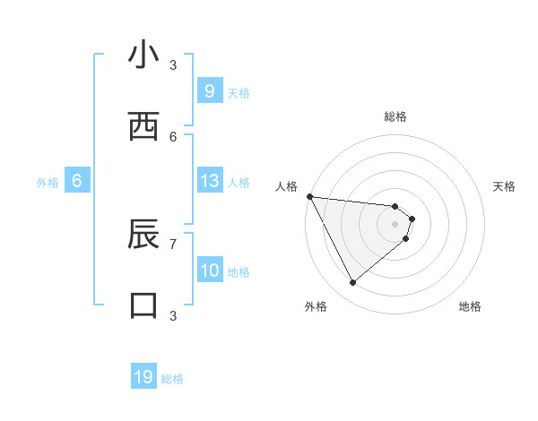 小西 辰口さんの総格は19画の1点!