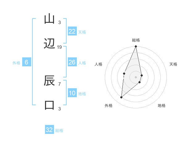 山辺 辰口さんの総格は32画の5点!