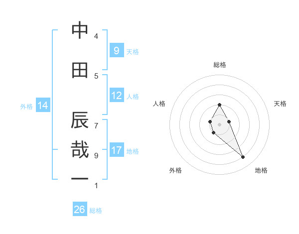 中田 辰哉一さんを姓名の画数から五運を鑑定