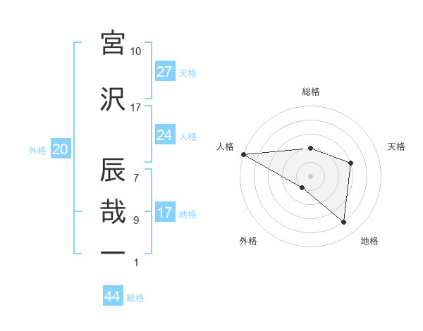 宮沢 辰哉一さんの地格は17画の4点!