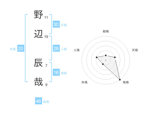 野辺 辰哉さんの地格は16画の5点!
