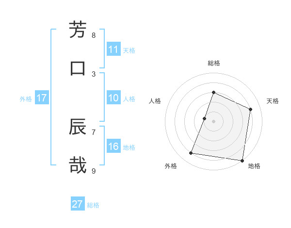 芳口 辰哉さんを姓名の画数から五運を鑑定