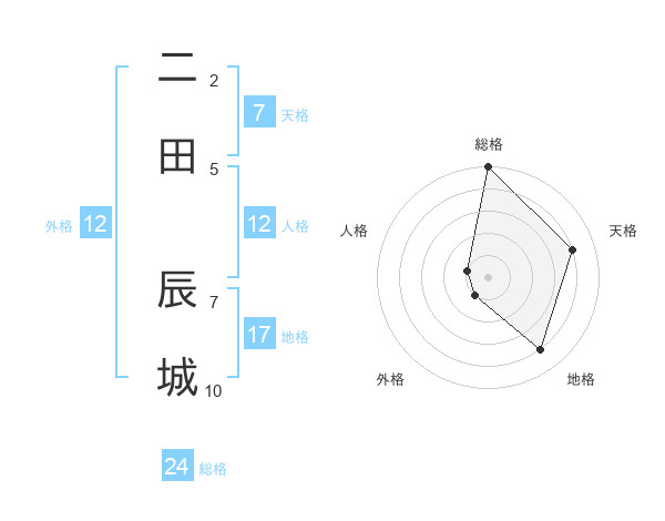 二田 辰城さんの総格は24画の5点!