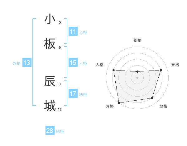 小板 辰城さんの総格は28画の1点!