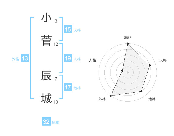 小菅 辰城さんの総格は32画の5点!