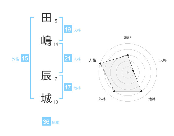 田嶋 辰城さんを姓名の画数から五運を鑑定