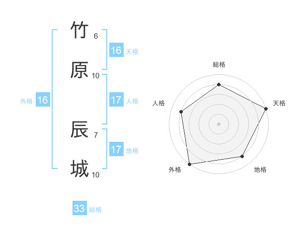 竹原 辰城さんの総格は33画の4点!