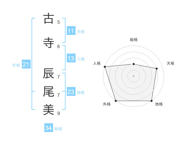 古寺 辰尾美さんを姓名の画数から五運を鑑定