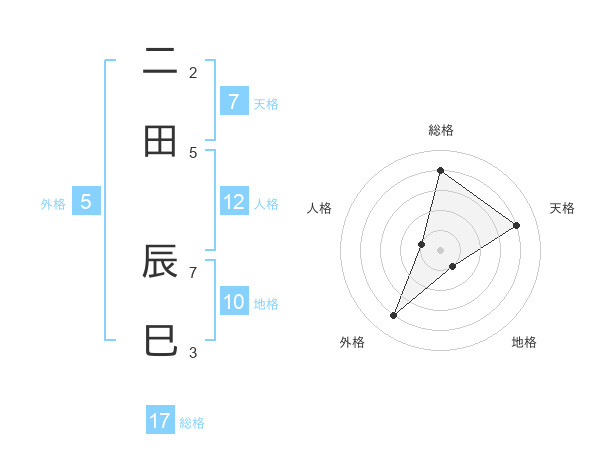 二田 辰巳さんの総格は17画の4点!