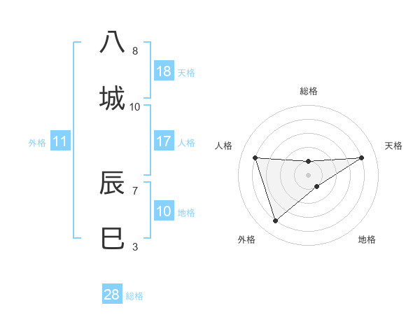 八城 辰巳さんの天格は18画の4点!