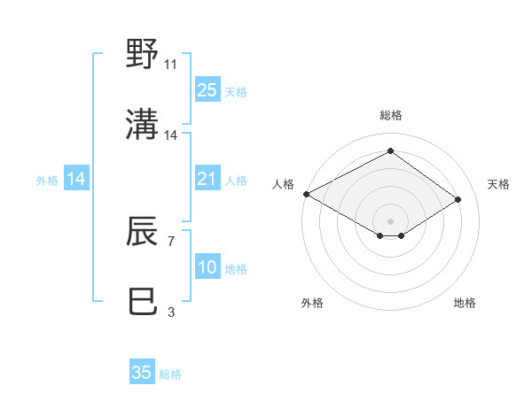 野溝 辰巳さんを姓名の画数から五運を鑑定