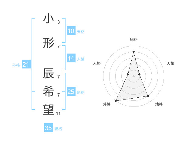 小形 辰希望さんの外格は21画の5点!