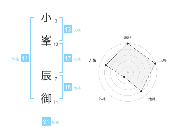 小峯 辰御さんの総格は31画の5点!