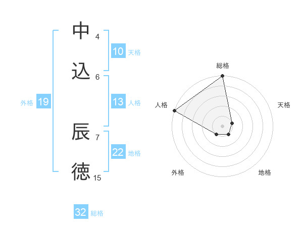 中込 辰徳さんの総格は32画の5点!