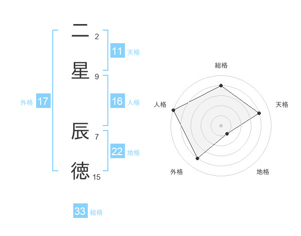 二星 辰徳さんの総格は33画の4点!