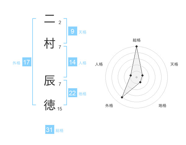 二村 辰徳さんを姓名の画数から五運を鑑定