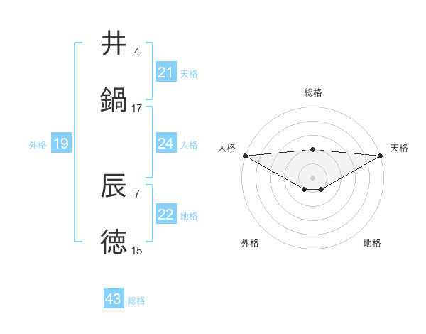 井鍋 辰徳さんの天格は21画の5点!